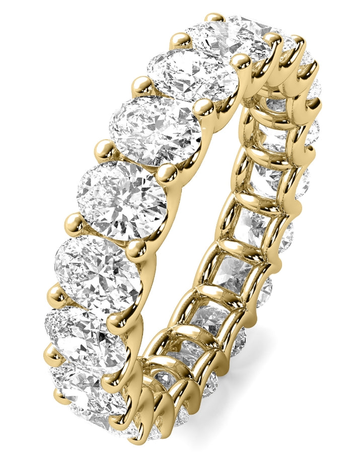 This elegant eternity band features 4 x 3 Oval diamonds totaling 2.5 to 3 carats, all prong-set in classic 14K or 18K gold. With a smooth, comfortable fit and timeless design, it’s perfect for pairing with your engagement ring, wearing on its own, or stacking.