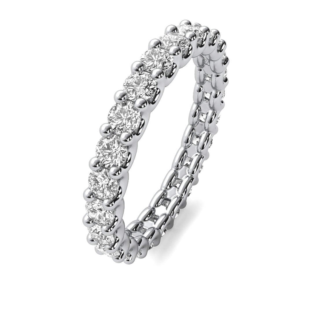 This elegant eternity band features round diamonds totaling 2.7 to 3.0 carats, all prong-set in classic 14K or 18K gold. With a smooth, comfortable fit and timeless U-Prong design, it’s perfect for pairing with your engagement ring, wearing on its own, or stacking.