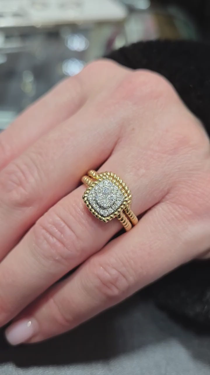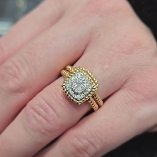 Natural 0.30cts Diamonds Set in Solid 14k Yellow Gold. Braided Design. Bridal Set Includes Engagement Ring and Wedding Band. 1 Available
