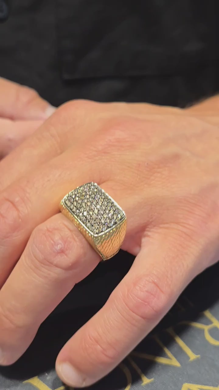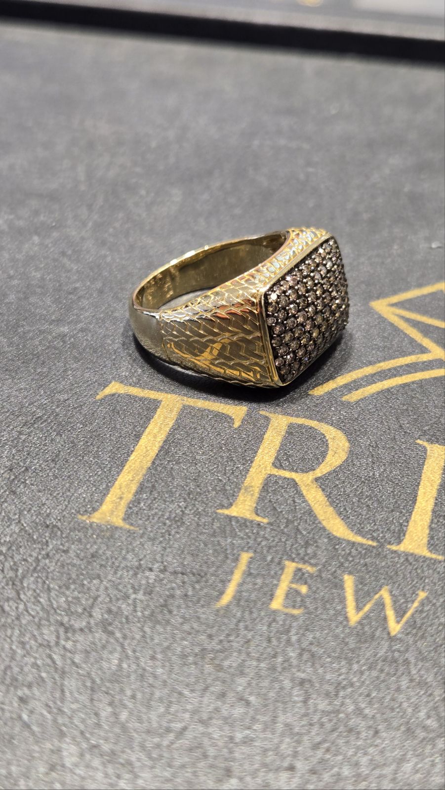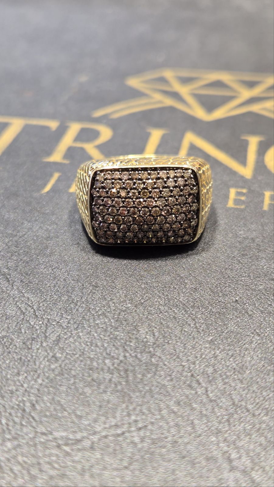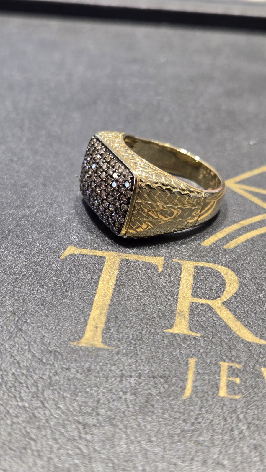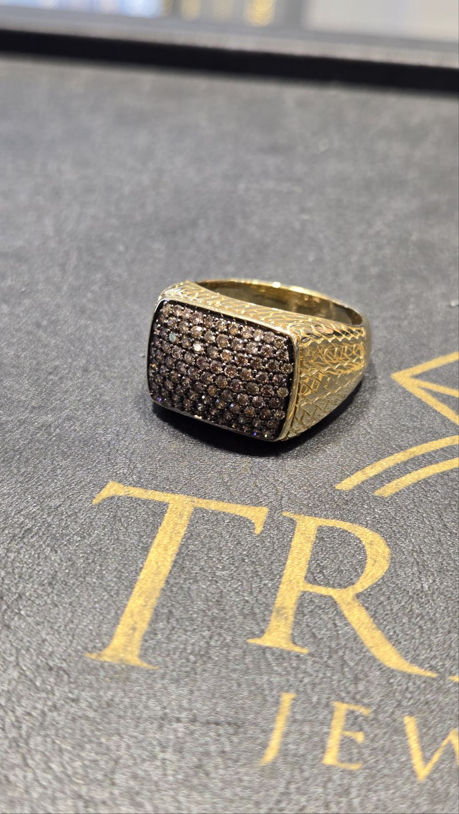 Men's Diamond Ring. Made of Solid 10K Yellow Gold. Set with 1ct of Chocolate Diamonds.