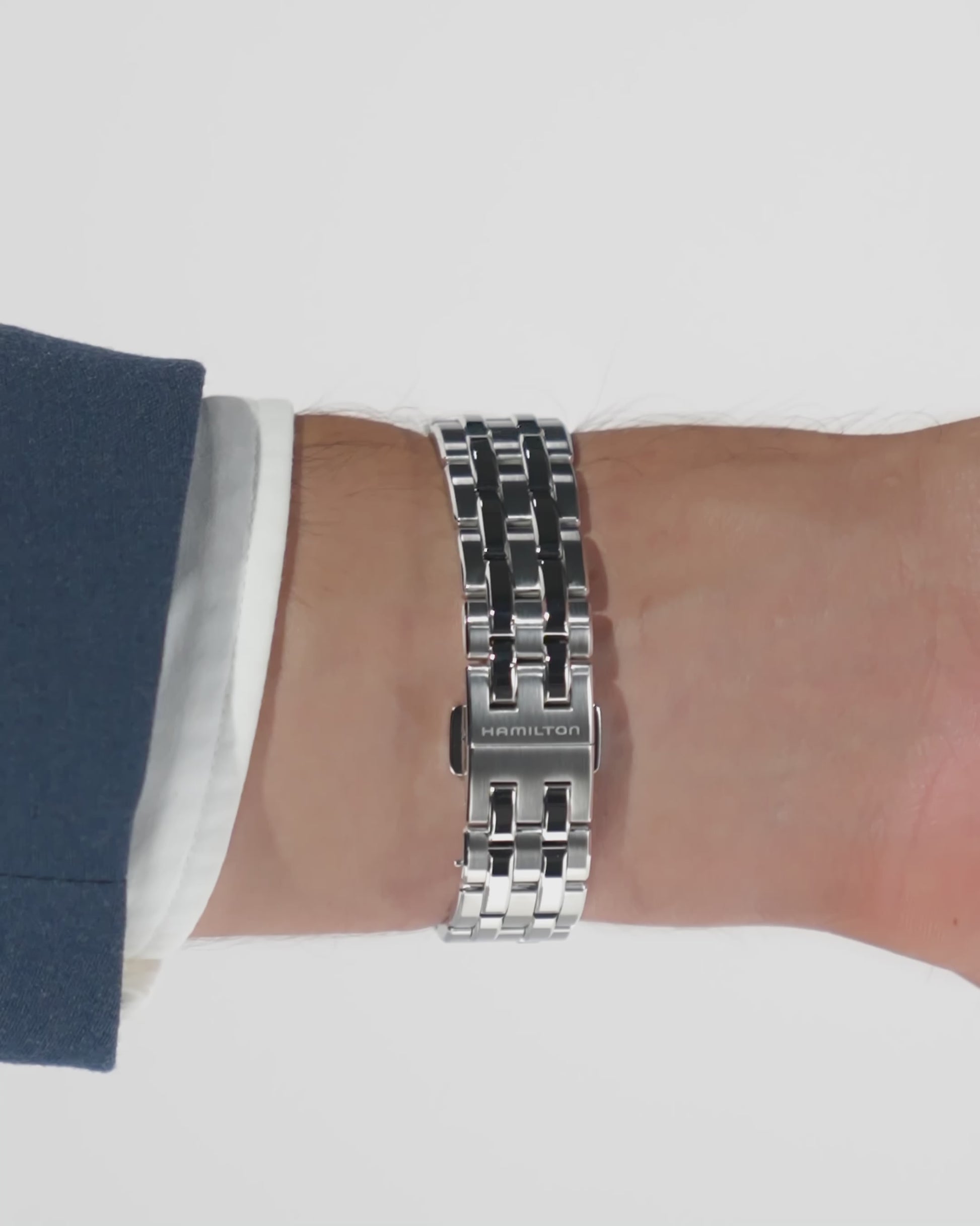 Offering a glimpse of its powerful inner mechanics, the Jazzmaster Open Heart lets precision take center stage with a new 42mm dial. Featuring a captivating midnight blue dial that sparkles, this showstopping timepiece fuses the modernity of urban architechture with the infinity of the cosmos. Showcasing Hamilton's ever-evolving craftsmanship and attention to detail, the dial brings the H-10 automatic movement into the spotlight. With its 80 hour power reserve and Nivachron™ balance spring, the Jazzmaster Open Heart Auto is fitted with an intricate stainless steel bracelet. Discover our collection of dress watches.