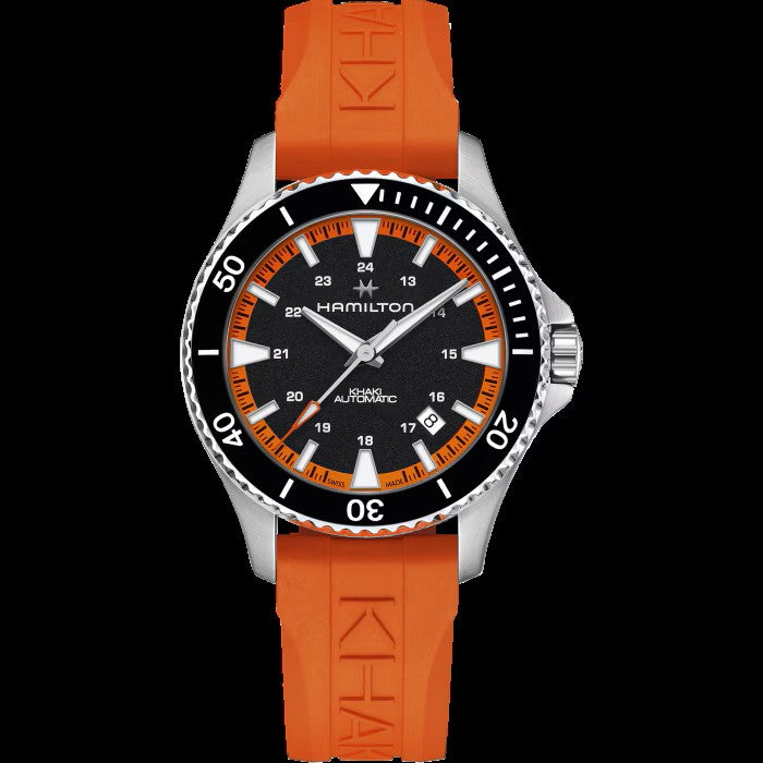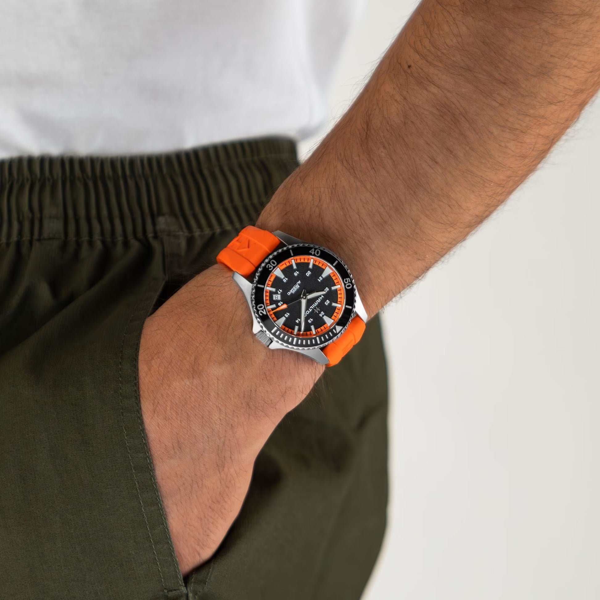 Beachside, poolside or swimming in the deep ocean, the new Khaki Navy Scuba is guaranteed to make a splash in the style stakes. For modern mariners, snorkelers, surfers and beach lovers, it’s eye-catching as well as functional, thanks to its tangerine orange rubber strap and contrasting black dial. Whether you’re timing your swim, your run or your time in the sun, it will make sure you keep your cool, even in soaring temperatures.