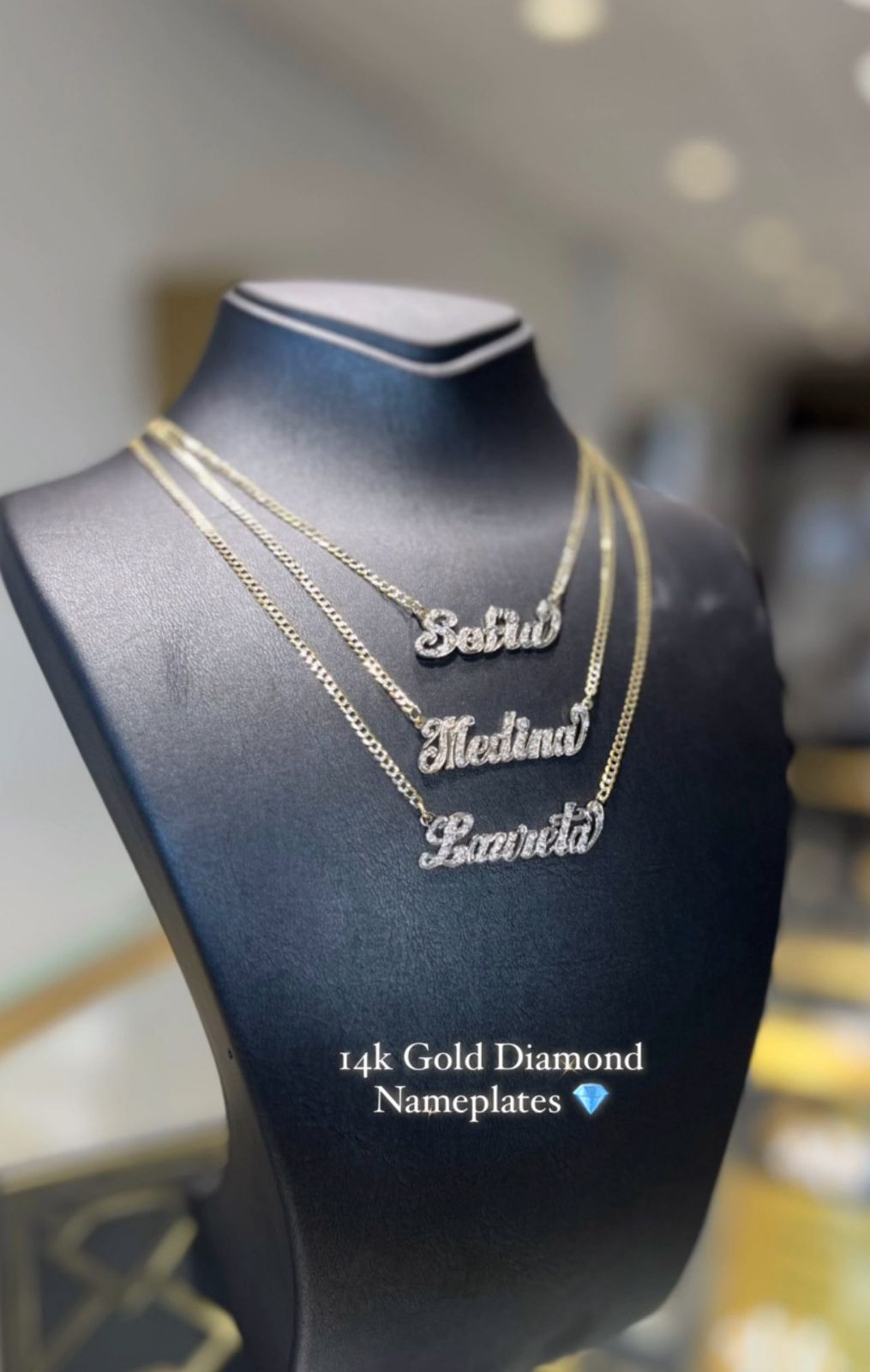 Custom Hand Made Solid 14k Gold Nameplate with a Solid 14k Gold 2 tone Cuban Chain.