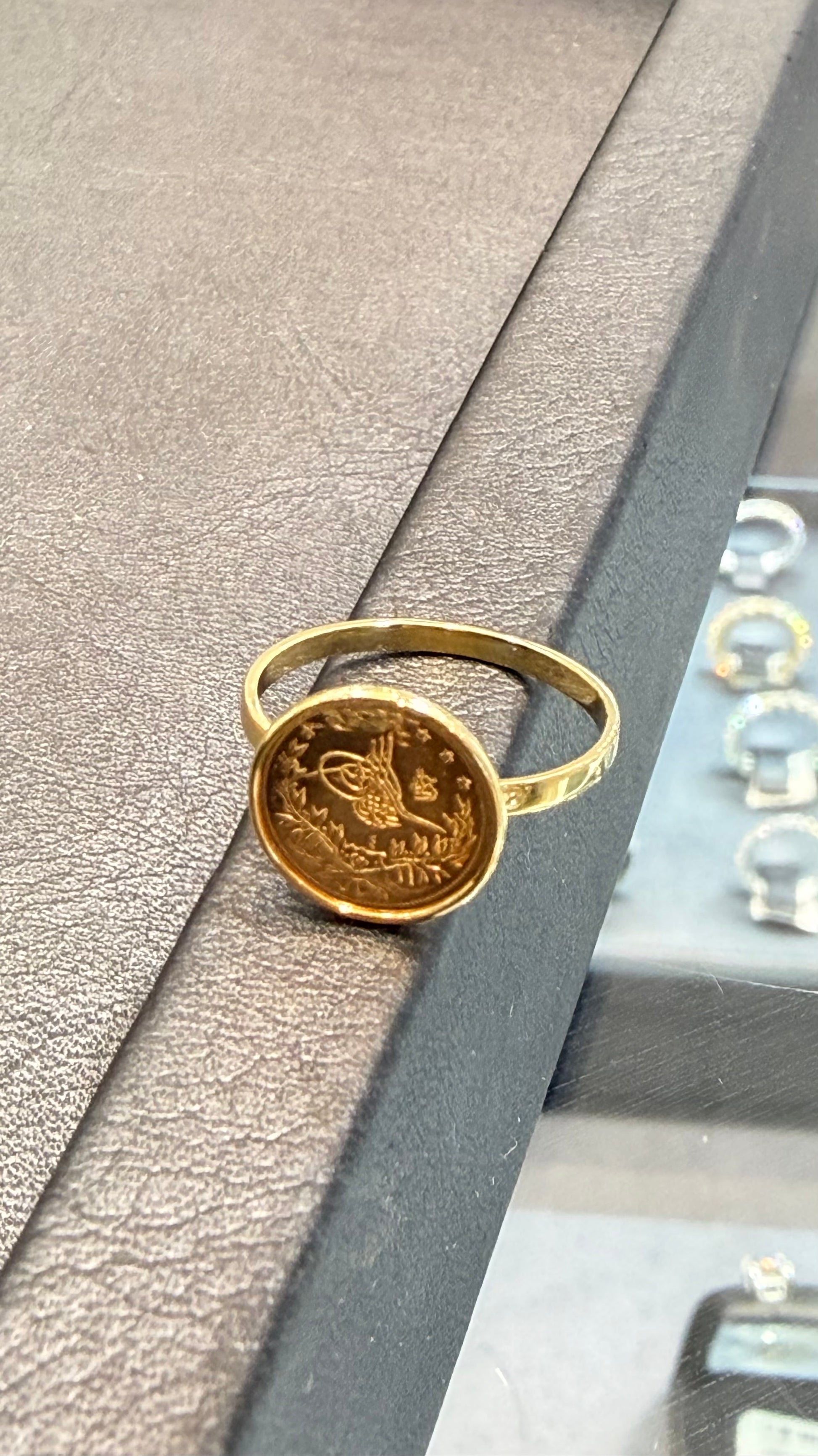 Coin is Solid 21K Gold While the rest of the Ring is Made out of Solid 14k Gold.